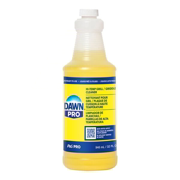 Expertly clean your grill to keep it free of grease and buildup with this Dawn Professional 32 oz. high-temperature grill / griddle cleaner. This ready-to-use commercial grill cleaner is specially designed with a powerful grease-fighting formula that loosens and dissolves carbonized grease and burnt-on food residue on hot grills and griddles, making it easier to maintain a clean cooking environment. This item is sold with (6) 32 oz. bottles per case and 1 spray top. Each 32 oz. bottle features a versatile design that can be used with the spray-top or the included flip-top caps for easy application to food contact surfaces, and for storage when not in use.