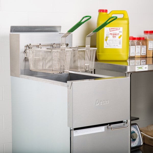 This Dean by Frymaster fryer features a 1" drain valve for quick and easy cleaning. The wide cold zone design on the SR142G Super Runner gas fryer protects oil integrity by trapping debris under the cooking area, preventing carbonization of particles and wasteful oil deterioration.