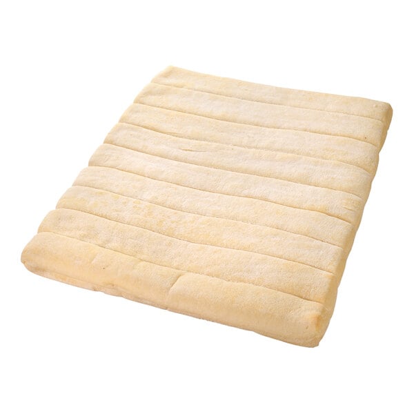 Because it's pre-scored and parbaked, this breadstick shell requires only a few steps before it's ready to bake. Simply defrost, top with your choice of delicious ingredients, and then bake at 450 degrees Fahrenheit for 8 minutes; it's as fast and easy as it sounds! This convenience eliminates the need to mix, knead, and proof dough without eliminating the smell and taste of freshly baked breadsticks. It's ideal for small pizzerias and restaurants that want to add simple yet delicious appetizers and desserts to their offerings. Each case contains 10 slabs of (9) 2 oz. breadsticks for a total of 90 breadsticks.
