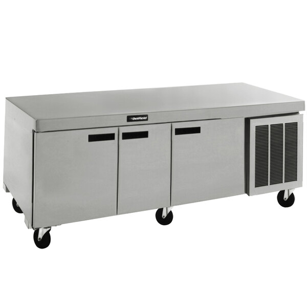 The Delfield 18691BUCMP 91" undercounter refrigerator with three doors provides plenty of space to store ingredients, and a durable stainless steel top to prepare your signature salads, sandwiches, and more! Featuring a stainless steel exterior, the unit is durable enough to withstand frequent use in your commercial establishment.