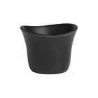 Enhance your dining experience with the Delfin Marisol from Steelite International 1.5 oz. black melamine sauce dish. Drawing inspiration from nature, this dish features an organic shape that adds a touch of natural elegance to any table setting. The sleek black color complements a wide range of decor styles, making it a versatile choice for various dining environments.
