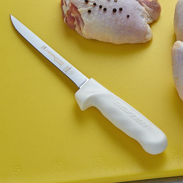 This Dexter-Russell 01543 Sani-Safe 6" flexible boning knife is the perfect tool to remove bones from poultry, meat, and fish.