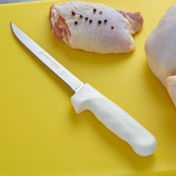 Crafted with care to handle the needs of your kitchen, this Dexter-Russell Sani-Safe narrow boning knife is ideal for removing membranes and bones from fish, beef, and poultry. With its highly ergonomic Sani-Safe handle, individually ground blade, and unique edge geometry, you can rest assured that this knife will stay sharp over time and debone with precision. This versatile tool is perfect for any commercial kitchen that regularly prepares and serves seafood and meat.