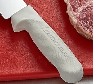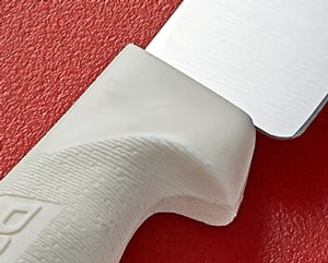 This knife's Sani-Safe handle is both textured and slip-resistant. It is able to withstand temperatures up to 250 degrees Fahrenheit. It also boasts a comfortable, ergonomic design that is easy to hold with a protective finger guard to reduce accidental injuries.