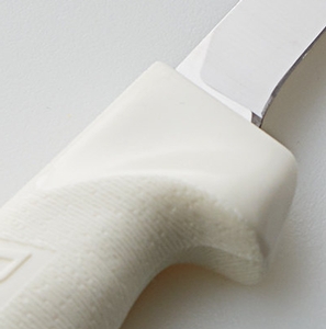 This knife's Sani-Safe handle is both textured and slip-resistant. It is able to withstand temperatures up to 250 degrees Fahrenheit. It also boasts a comfortable, ergonomic design that is easy to hold with a protective finger guard to reduce accidental injuries.