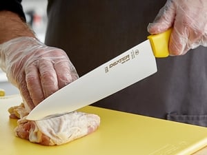 If you work in a commercial kitchen you come to find nothing is more absolute than someone stealing your cutlery. So, you never buy expensive / bring in with you expensive gear unless it will never leave your sight (rare). There are a multitude of chef knives in this price range, but the DR 12443 is among the best I have ever used. Here are the reasons why: A) The blade holds its edge for an extended period. You sharpen at your desired angle (20 - 22.5 degrees is more than adequate), and as long as you practice proper knife skills, the edge will hold for weeks in a commercial setting, just make sure to hone as needed. B) The knife is easy to keep clean. it is NSF certified and can be cleaned by hand or in a machine. It's easy enough to do by hand, but mine has seen Read More