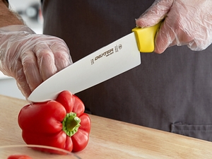 If you work in a commercial kitchen you come to find nothing is more absolute than someone stealing your cutlery. So, you never buy expensive / bring in with you expensive gear unless it will never leave your sight (rare). There are a multitude of chef knives in this price range, but the DR 12443 is among the best I have ever used. Here are the reasons why: A) The blade holds its edge for an extended period. You sharpen at your desired angle (20 - 22.5 degrees is more than adequate), and as long as you practice proper knife skills, the edge will hold for weeks in a commercial setting, just make sure to hone as needed. B) The knife is easy to keep clean. it is NSF certified and can be cleaned by hand or in a machine. It's easy enough to do by hand, but mine has seen Read More