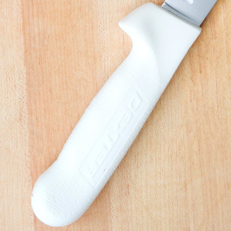 Featuring Dexter-Russell's Sani-Safe textured handle, this piece provides the user with a firm, slip-resistant grip, ensuring safe, accurate cuts. It also boasts an easy-to-clean polypropylene construction to withstand temperatures of up to 250 degrees Fahrenheit.
