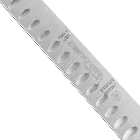 This slicer knife is guaranteed to easily slide through tough, fibourous meats, such as large hams, rostisseries, or roasts. Made with proprietary DEXSTEEL high-carbon, high-alloy stainless steel blades, this knife offers enhanced sharpness, edge holding, corrosion resistance, and ease of resharpening.