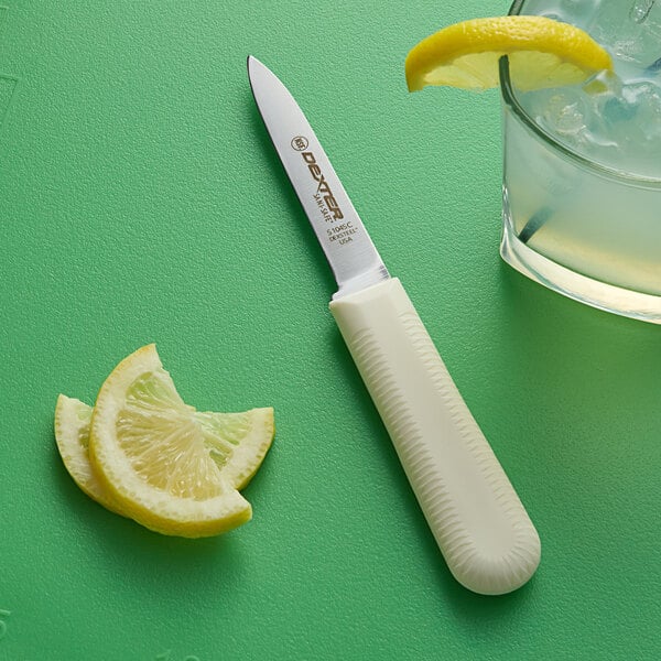 Dexter-Russell 15303G Sani-Safe 3 1/4 “ Green Cook’s style paring knife is great for cutting my small fruit and peeling my potatoes and dicing onion.