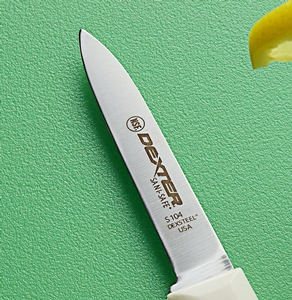 Dexter-Russell 15303G Sani-Safe 3 1/4 “ Green Cook’s style paring knife is great for cutting my small fruit and peeling my potatoes and dicing onion.