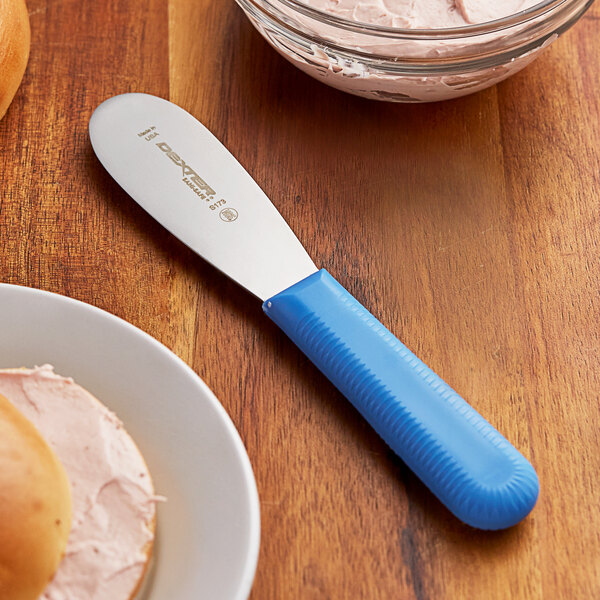 Boasting a comfortable, ergonomic design, this spreader's Sani-Safe handle is textured, slip-resistant, and able to withstand temperatures up to 250 degrees Fahrenheit. Its impenetrable blade-to-handle seal prevents bacteria from becoming trapped for safe, sanitary use and easy cleaning. Plus, its blue color makes it a useful tool to integrate in your HACCP system, so you can avoid cross contamination in your kitchen.