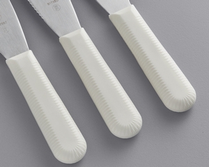 Boasting a comfortable, ergonomic design, these spreaders' Sani-Safe handles are textured, slip-resistant, and able to withstand temperatures up to 250 degrees Fahrenheit. Their impenetrable blade-to-handle seal prevents bacteria from becoming trapped for safe, sanitary use and easy cleaning. Plus, the white color makes them useful tools to integrate in your HACCP system, so you can avoid cross contamination in your kitchen.