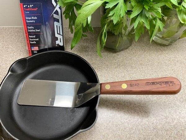 Featuring a natural rosewood handle, this Dexter-Russell 19670 Traditional 4" x 2" solid turner is perfect for the traditional chefs who prefer the warmth and feel of a wooden handle. This beautiful handle is secured to the blade with 3 durable brass compression rivets for ultimate sturdiness. From there, the high-quality, stainless steel blade offers the right amount of flexibility for easy handing of food. This precision-ground blade is exceptional at holding an edge and features a unique edge geometry, exclusive to the Traditional line of turners and cutlery. For safety and sanitation, this blade is secured to the handle with an impervious blade-to-handle seal.