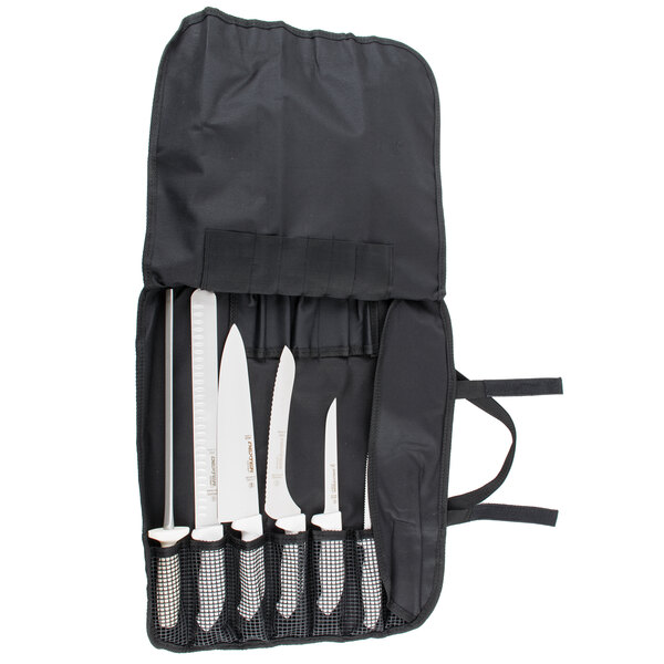 Including 6 knives, a sharpening steel, and a carrying case, this set provides the user with a variety of tools to handle any job. Each knife features a high-carbon, stainless steel blade and a SofGrip handle for comfortable use, while the sharpening steel helps keep the blades slicing through product with ease, even after years of use. The carrying case ensures that the set is easy and safe for storage and transport. This set from Dexter-Russell is perfect for any food service operation, offering high-quality comfort and long-lasting performance.