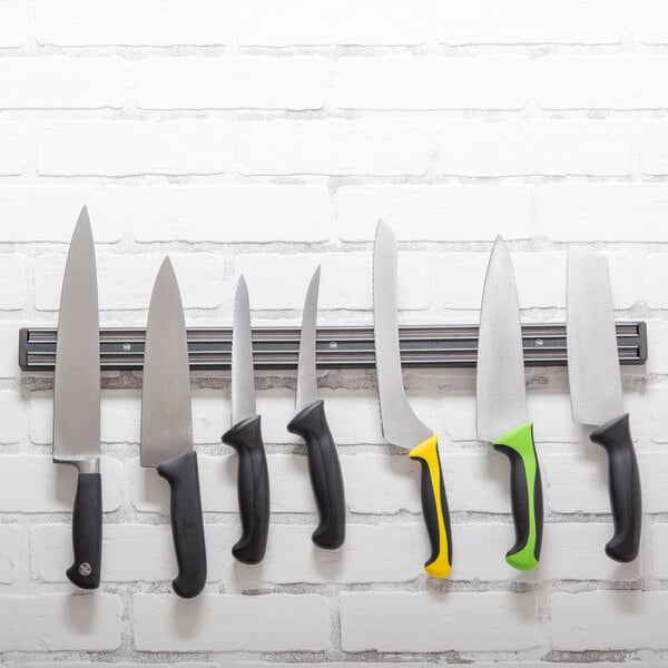 This knife storage solution saves you counter / drawer space while also being completely sanitary for safe use in your commercial kitchen. Immediately identify each knife as they're displayed on the wall for easy access. Simple enough for every employee to use, add this magnetic strip to your kitchen for ideal knife storage.