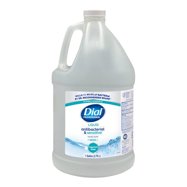 Keep hands fresh and clean with this Dial DIA82838 Sensitive Skin antibacterial 1 gallon liquid hand soap refill. It can be used with any bulk liquid soap dispenser (sold separately). As the number one doctor recommended antibacterial hand soap, it is formulated to kill 99.9% of bacteria in just a single wash. This provides patrons and staff alike with broad spectrum antibacterial effectiveness to prevent the spread of germs.