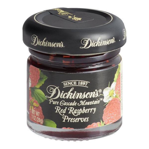 Indulge your guests with the full-bodied flavor and outstanding quality of Dickinson's pure Cascade Mountain red raspberry preserves. Since 1897, Dickinson's has been the leading American brand of gourmet preserves, syrups, and honey, with its "American Gourmet" character, premium varietal fruits, and pure, high-quality ingredients. Unlike jelly or jam, preserves like these feature perfect pieces of flavorful fruit dowsed in sweet syrup.