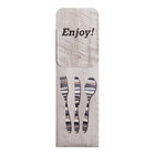 This Dinex black enjoy paper cutlery caddy with napkin is an excellent way to store and present your cutlery! It is made of heavyweight paper and features a flap that completely covers your cutlery, keeping them concealed and dust-free. The tab closure makes it easy to open and close while keeping utensils hygienically secured inside. Its decorative utensils graphic and the word "Enjoy!" written in white script stand out against the black paper and add a touch of charm to dining presentations. It comes pre-loaded with a 16" x 16" 2-ply, white, trimline napkin for added convenience and cleanliness.