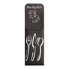 - Printed sleeve with flap closure holds cutlery for elegant and sanitary presentation