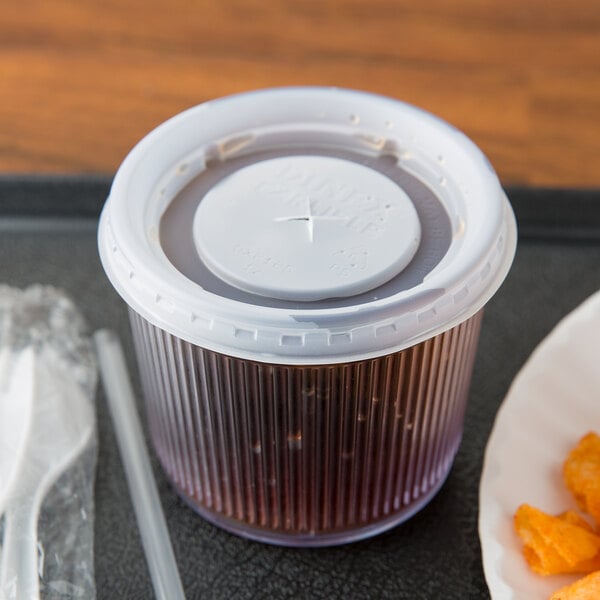 Reduce drink spills at your hospital, retirement community, or healthcare facility with this Dinex DX2125ST9000 translucent disposable lid with straw slot. Each single-use, disposable lid is made of sturdy, high density polystyrene plastic, creating a durable guard against possible leaks. Easily insert a straw (sold separately) in this straw slotted lid, for spill-free sipping.