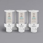 Dispenser Amenities 36370-SPBX Aviva 30 oz. Vanilla 3-Chamber Wall Mounted Locking Soap Dispenser with Translucent Bottles and Soapbox Logo