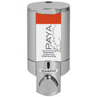 Upgrade the functionality and style of your bath and shower facilities with the help of this Dispenser Amenities 37150-PAYA Aviva 10 oz. solid white wall mounted locking shower dispenser with bottle and Paya logo. Ideal for hotels, cruise lines, and assisted living facilities, this elegant dispenser can be used to dispense liquids ranging from shampoo and conditioner to soap, shower gel, and lotion with just the push of a button. It includes a liquid identification label so that your guests will know what's being dispensed, as well as a solid white bottle for your convenience. Thanks to the patented "true pump system," this dispenser delivers precise pumps no matter how thick the liquid. It's tested to perform for up to 300,000 cycles, so it's sure to prove a long-lasting addition to your facility. With an attractive white finish and curved design, it will also complement virtually any decor! This unit includes the Paya logo so that your guests can quickly recognize the identity of your bath products.