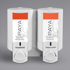 Dispenser Amenities 37250-PAYA Aviva 20 oz. Solid White 2-Chamber Wall Mounted Locking Shower Dispenser with Bottles and Paya Logo