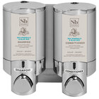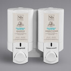 Dispenser Amenities 37270-SPBX Aviva 20 oz. Solid Vanilla 2-Chamber Wall Mounted Locking Shower Dispenser with Bottles and Soapbox Logo