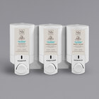 Dispenser Amenities 37350-SPBX Aviva 30 oz. Solid White 3-Chamber Wall Mounted Locking Shower Dispenser with Bottles and Soapbox Logo