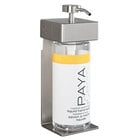 Upgrade the functionality of your bath and shower facilities with the help of this Dispenser Amenities 39234-O3-PAYA SOLera 24 oz. ABS plastic wall mounted adjustable 2-chamber locking shower dispenser with oval bottles and Paya label. Ideal for hotels, cruise lines, and assisted living facilities, this dispenser can be used to dispense liquids ranging from shampoo and conditioner to soap, shower gel, and lotion with just the push of a button. Thanks to the patented "true pump system," this dispenser delivers precise pumps no matter how thick the liquid. It's tested to perform for up to 300,000 cycles, so it's sure to prove a long-lasting addition to your facility. It also has two chambers so you can offer multiple liquids at once! With durable yet lightweight stainless steel pumps, it's sure to prove a long-lasting addition to your facility. This dispenser comes with two oval bottles outfitted with the Paya logo so that your guests can quickly recognize the identity of your bath products. For your convenience, the bracket is height adjustable in order to accommodate bottles of different capacities. Thanks to a unique anchor system, your bottles are locked in place for a perfect fit and always remain front-facing.