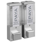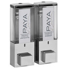 Upgrade the functionality and style of your bath and shower facilities with the help of this Dispenser Amenities 86254-PAYA iQon 26 oz. white wall mounted 2-chamber locking shower dispenser with translucent bottles and Paya logo. Ideal for hotels, cruise lines, and assisted living facilities, this elegant dispenser can be used to dispense liquids ranging from shampoo and conditioner to soap, shower gel, and lotion with just the push of a button. It includes liquid identification labels so that your guests will know what's being dispensed, as well as translucent bottles for your convenience. The translucent bottles will help your staff easily see when refills are needed for extra efficiency. Thanks to the patented "true pump system," this dispenser delivers precise pumps no matter how thick the liquid. It's tested to perform for up to 300,000 cycles, so it's sure to prove a long-lasting addition to your facility. It also has two chambers so you can offer multiple liquids at once! With an attractive white finish and sleek design, it will also complement virtually any decor! This unit includes the Paya logo so that your guests can quickly recognize the identity of your bath products.