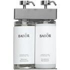 Upgrade the functionality of your bath and shower facilities with the help of this Dispenser Amenities SOLera 36 oz. ABS plastic wall mounted adjustable 3-chamber locking shower dispenser with oval bottles and Babor label 39334-O3-BABOR. Ideal for hotels, cruise lines, and assisted living facilities, this dispenser can be used to dispense liquids ranging from shampoo and conditioner to lotion with just the push of a button. Thanks to the patented "true pump system," this dispenser delivers precise pumps no matter how thick the liquid. It's tested to perform for up to 300,000 cycles, so it's sure to prove a long-lasting addition to your facility. It also has three chambers so you can offer multiple liquids at once! With durable yet lightweight stainless steel pumps, it's sure to prove a long-lasting addition to your facility. This dispenser comes with three oval bottles outfitted with the Babor logo so that your guests can quickly recognize the identity of your bath products. For your convenience, the bracket is height adjustable in order to accommodate bottles of different capacities. Thanks to a unique anchor system, your bottles are locked in place for a perfect fit and always remain front-facing.
