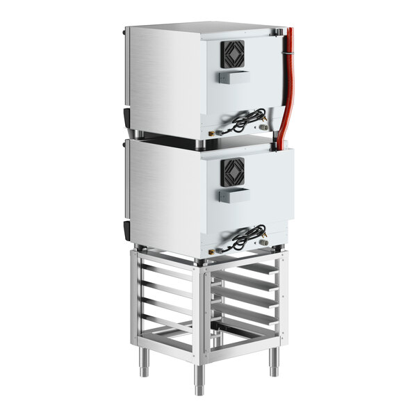 This kit comes with two COH-T4-M thermostatic convection ovens with moisture injection, a stacking kit, and an oven stand. This unit has many functions for medium-high volume that make it perfect for baking cookies, pastries, and other baked goods, roasting vegetables, and finishing other dishes. Plus, it features thermostatic controls, and its compact size is great for small footprints to take up less space in your busy kitchen.