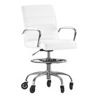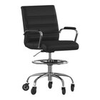 Elevate your workspace with the sleek and stylish Flash Furniture Lexi black mid-back drafting chair. Designed with commercial grade LeatherSoft upholstery, it's made of a blend of leather and polyurethane, providing a soft and luxurious feel while ensuring long-lasting durability. The mid-back design, along with the cushioned seat and backrest, provides added support and comfort throughout the day, making it perfect for maintaining productivity during long hours of work. Its built-in lumbar support helps maintain proper posture and reduces strain on your lower back.