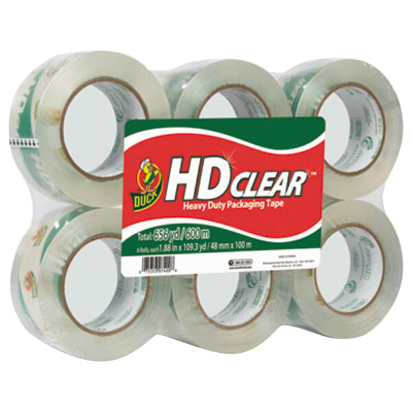 Duck Tape 299016 1 7/8" x 110 Yards Clear Heavy-Duty Carton Packaging Tape - 6/Pack