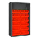 Equip your garage, warehouse, packing station, or shipping and receiving department with this Durham Mfg 12 gauge steel enclosed bin rack. This handy unit keeps tools and supplies organized and easy to access. It features a louvered panel along the back to hold Hook-on-Bin storage bins, and it comes with 12 large and 6 extra large blue bins to hold tools, parts, and supplies. To withstand tough environments, this cabinet boasts an extra heavy-duty 12 gauge steel construction with a gray, textured, powder-coated finish for additional strength.
