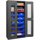 To withstand tough environments, this cabinet features a durable 14 gauge steel construction with a gray powder-coated finish for additional strength. The ventilated doors allow air to circulate, and they are lockable to securely store important items. Durable and secure, this storage cabinet is a reliable choice for your facility.