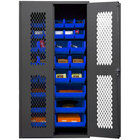 To withstand tough environments, this cabinet features a durable 14 gauge steel construction with a gray powder-coated finish for additional strength. The ventilated doors allow air to circulate, and they are lockable to securely store important items. Durable and secure, this storage cabinet is a reliable choice for your facility.