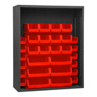 Equip your garage, warehouse, packing station, or shipping and receiving department with this Durham Mfg 12 gauge steel enclosed bin rack. This handy unit keeps tools and supplies organized and easy to access. It features a louvered panel along the back to hold Hook-on-Bin storage bins, and it comes with 12 medium, 12 large, and 6 extra large red bins to hold tools, parts, and supplies. To withstand tough environments, this cabinet boasts an extra heavy-duty 12 gauge steel construction with a gray, textured, powder-coated finish for additional strength.