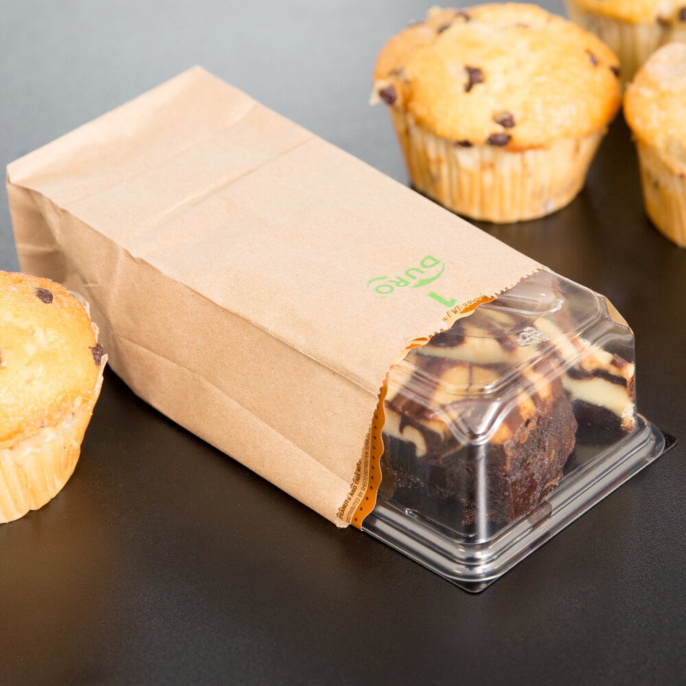 Package deli items, individual beverages, or other small delicacies in this Duro 1 lb. natural kraft paper bag. While its small yet versatile size is perfect for lighter products or single-item purchases, its natural color blends in with all styles of decor and can be accessorized to meet your own unique aesthetic. Additionally, this product is made from a minimum of 60% post-consumer recycled content, combining quality with eco-friendly sustainability.