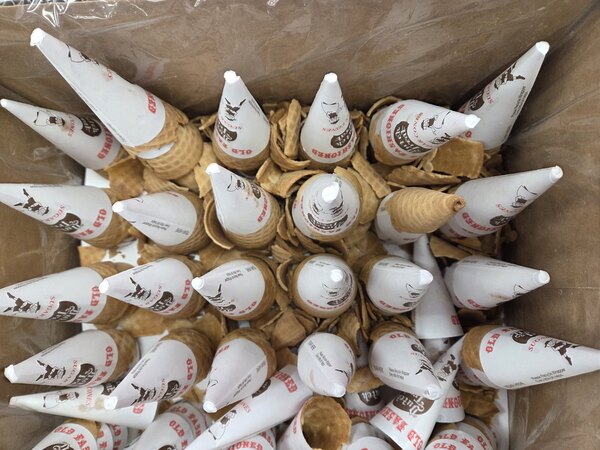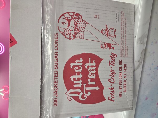 We ordered these, and they are just as described. Just beware that they are tiny sugar cones. I didn't pay attention when I ordered because I didn't realize sugar cones came in such small sizes. It was an expensive return, though the Webstaurant Store was great about it, of course.