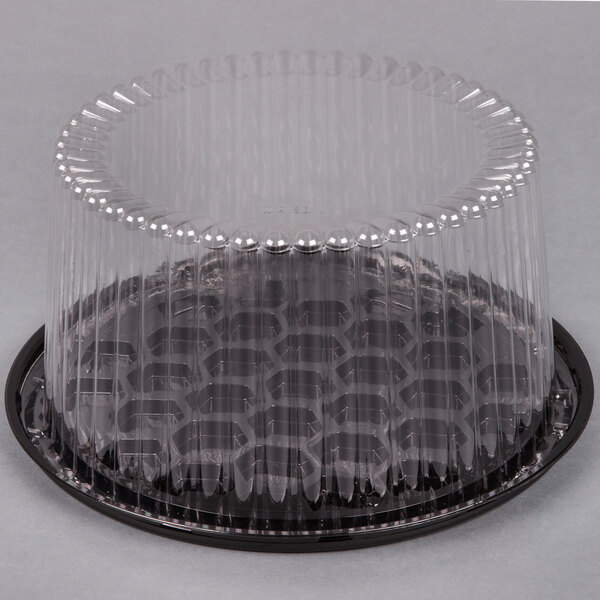 This set includes a black 8" tray and a clear, high dome lid, perfect for putting all of your best-selling cakes on display! The lid is tall enough to accommodate cakes with 2-3 layers that are up to 8" in diameter. Since the lid is clear, your guests will have an excellent view of the entire product!
