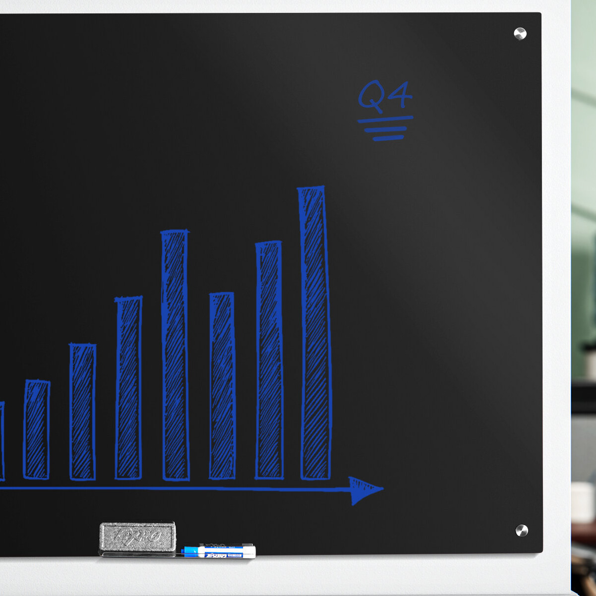 - Item #: 91136x48bglsDynamic by 360 Office Furniture 48" x 36" Frameless Wall-Mount Black Glass Dry Erase Board