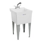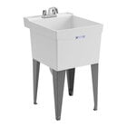 Introduce efficient and versatile washing options at your business with the E.L. Mustee UTILATUB thermoplastic utility laundry tub sink and faucet kit! This sink is a one-piece molded tub, built using a cellular molding process and proprietary structural thermoplastic resin that's durable, smooth, and leakproof. It features a smooth and colorfast white finish. With an ample 18 gallon capacity and 13" deep tub, this sink has plenty of space for washing a variety of items in a commercial application. This sink is built with mildew-resistant components and comes with finished 19 5/8" steel legs with levelers that adjust by up to 1 1/2" that make for an ergonomic washing experience.