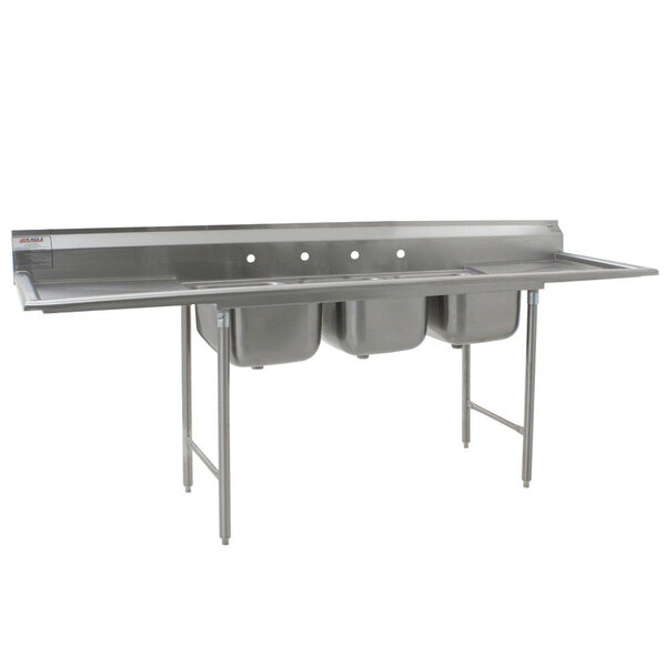 Eagle Group 414-22-3-18 Three 22" Bowl Stainless Steel Commercial Compartment Sink with Two 18" Drainboards
