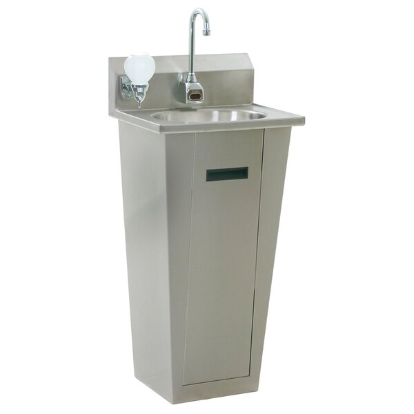 Install a convenient and useful sink in your business with the Eagle Group HSA-10-FA-PE electronic hand sink! Made of stainless steel, this hand sink features an electronic gooseneck faucet for excellent sanitation, reach, and clearance, and the included soap dispenser helps improve sanitation. The included P-trap ensures that the water and odorous refuse drained from the sink won't resurface, and the Tail piece ensures fast and easy installation. And thanks to its basket drain, this sink's plumbing is protected against clogs from large objects.