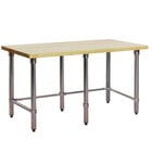 This Eagle Group MT2460ST 24" x 60" wood top work table boasts a 1 3/4" thick flat hardwood top that's great for a variety of baking applications as well as carving meats, chopping fruit, dicing vegetables, and even prepping or plating foods! (4) 16 gauge stainless steel 1 5/8" legs with plastic bullet feet provide support for the whole table. Plus, its open base allows you to easily roll and store large ingredient bins underneath the table.