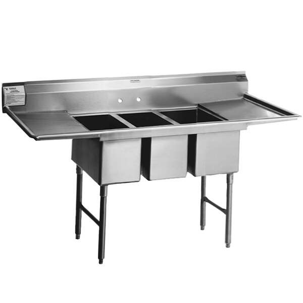 Eagle Group SFN3242-3-18-14/3 Three 32" x 14" Sideways Bowl Stainless Steel Spec-Master Commercial Compartment Sink with Two 18" Drainboards