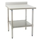 This Eagle Group T2436SEB-BS 24" x 36" work table boasts a durable 16 gauge, type 304 stainless steel top that's great for use as a prep area, storage and organization, and a variety of other applications! For added convenience the top is sound-deadened to reduce noise in your work area, while its patented uni-lok recessed gusset design reduces lateral movement for superior stability during use. (4) heavy gauge stainless steel 1 5/8" legs with stainless steel bullet feet provide support for the whole table, and an adjustable heavy gauge stainless steel undershelf gives you a place to keep extra supplies close at hand. Plus, this work table has a 4 1/2" rear upturn and 1 1/2" rolled front edge.